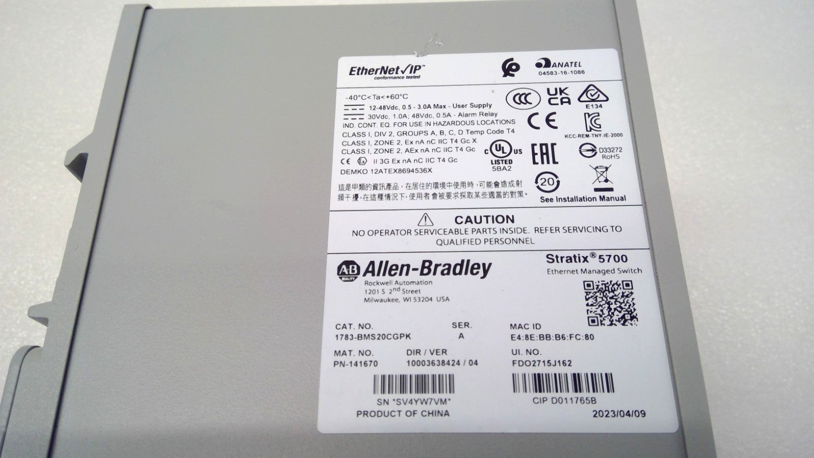 1783-BMS20CGPK Allen-Bradley Stratix 5700 Series Managed Ethernet Switch