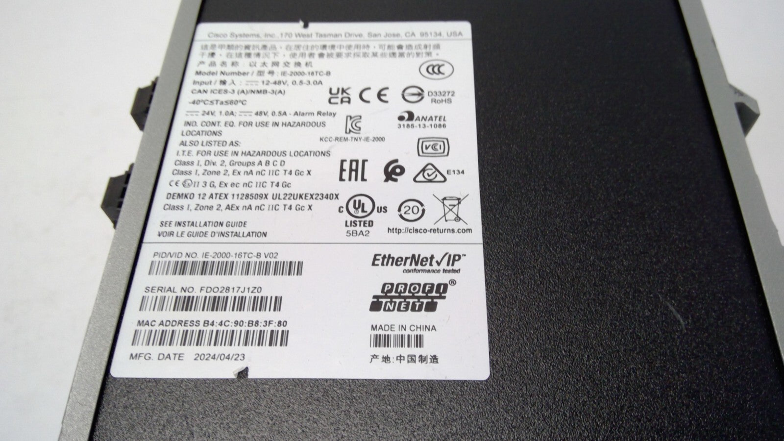 Cisco IE-2000-16TC-B Ethernet Switch-20 Ports Manageable 16 x RJ-45 Tested