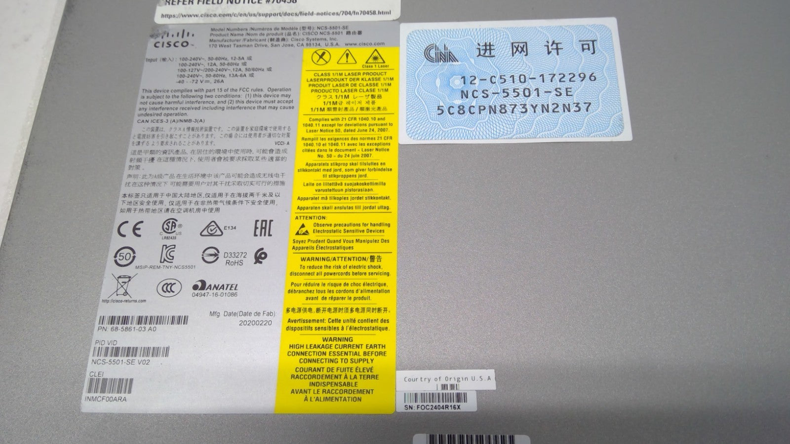 Cisco (NCS) 5500 Series NCS-5501-SE 1RU router 40x10G SFP 4x100GE QSFP28 /NO PSU