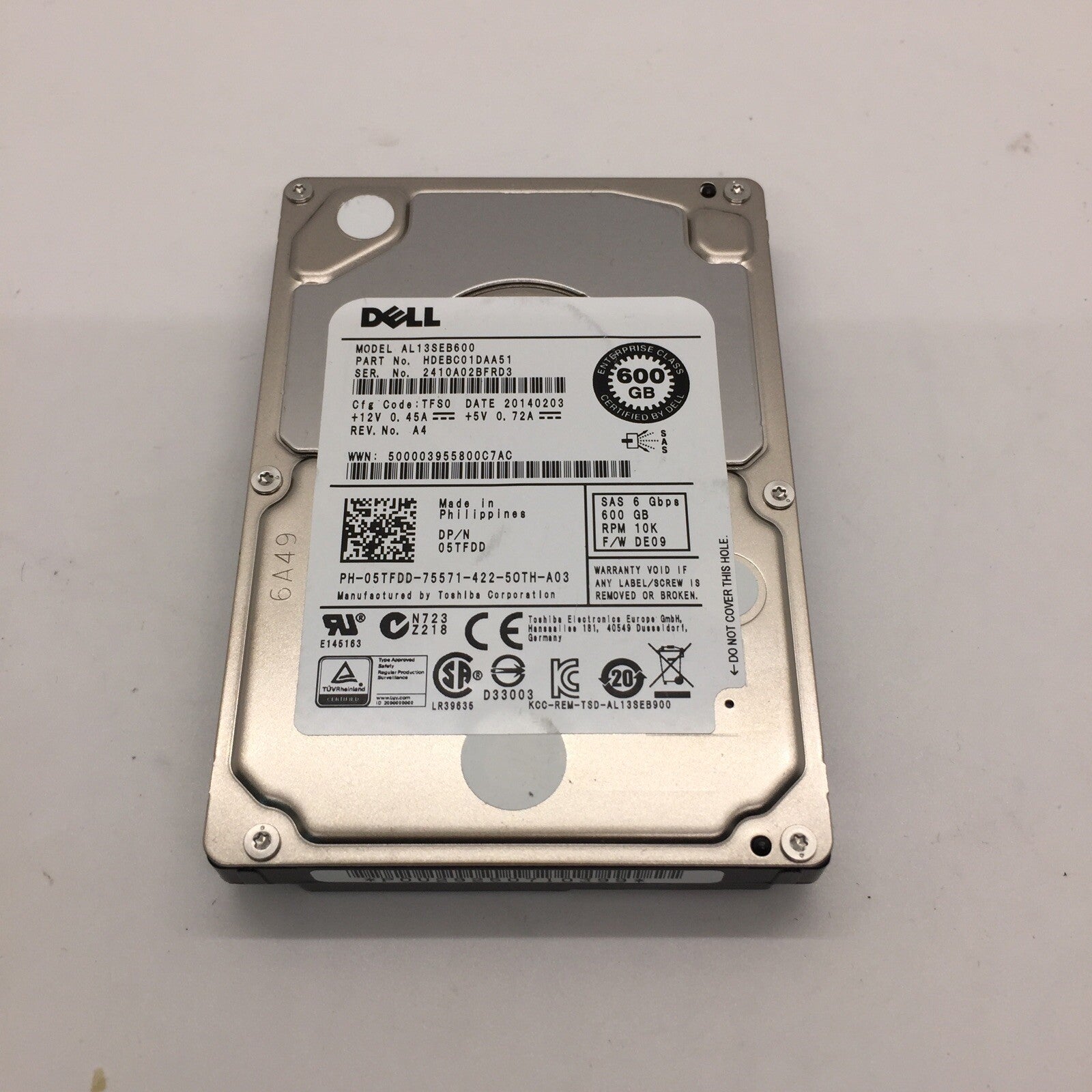 DELL AL13SEB600 05TFDD 600GB 10K RPM 2.5" SAS Internal Hard Disk Drive HDD