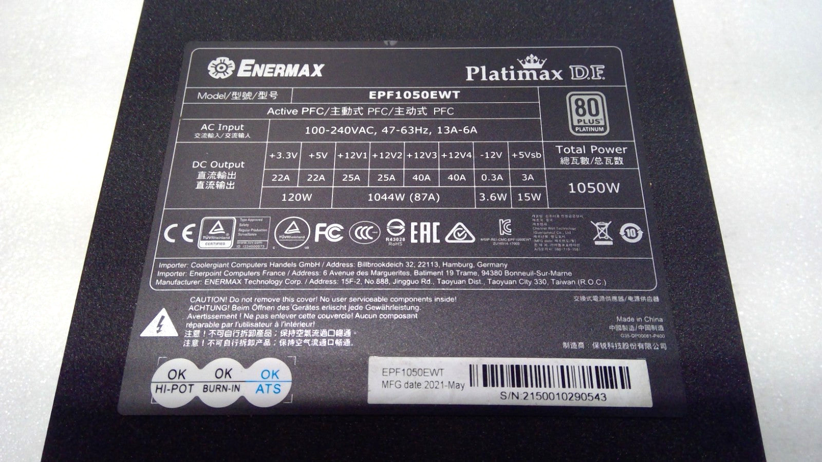 Enermax Platimax D.F. EPF1050EWT 1050W 80PLUS Fully Modular Power Supply