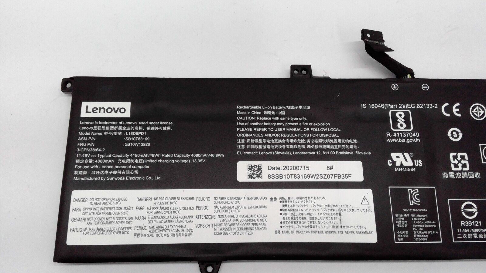 Genuine L18D6PD1 L18C6PD1 Battery for Lenovo ThinkPad X13 X390 X395 Series OEM