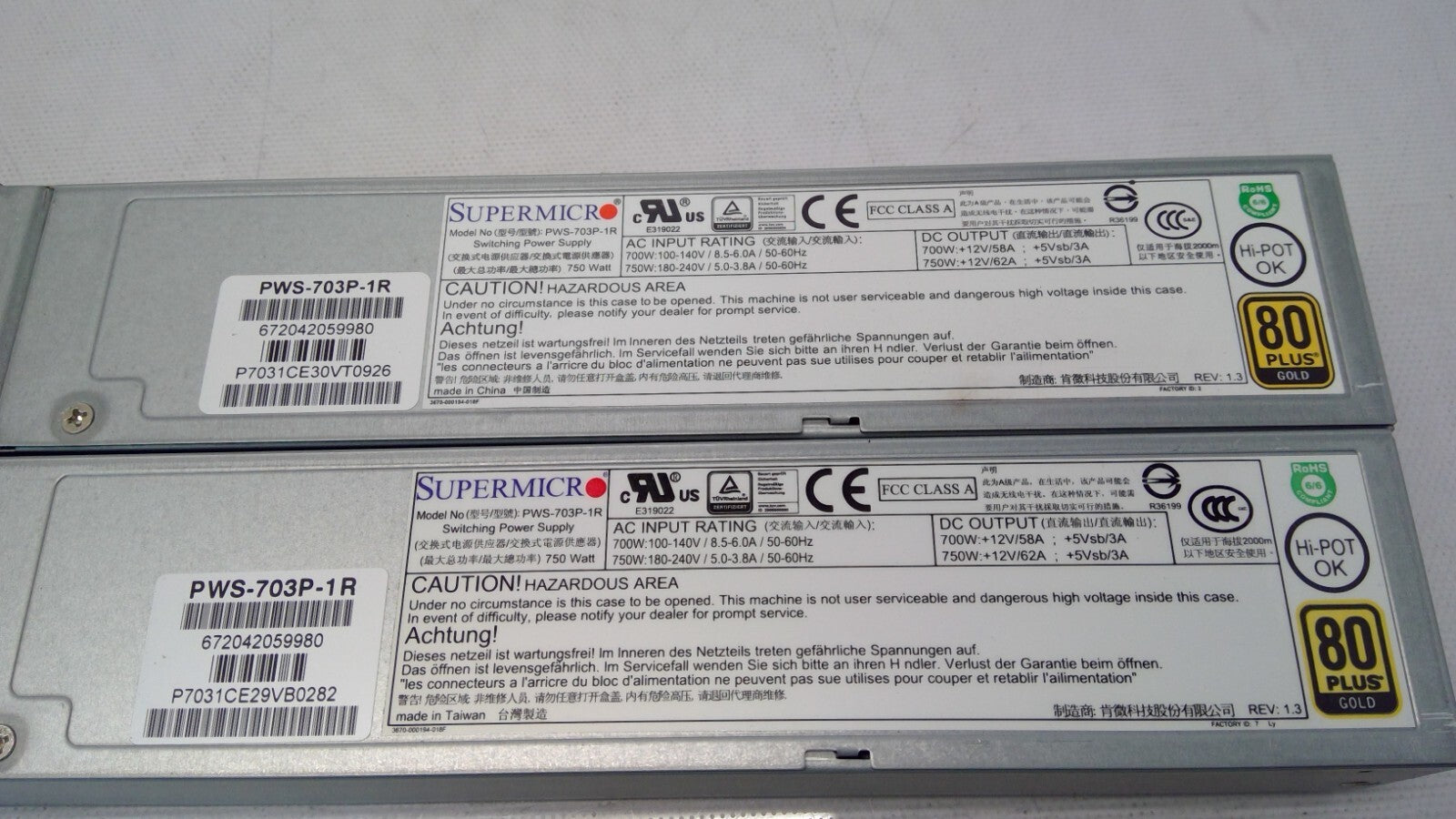 *Lot 2* Supermicro PWS-703P-1R 750W 1U Server 80+Gold PSU Switching Power Supply