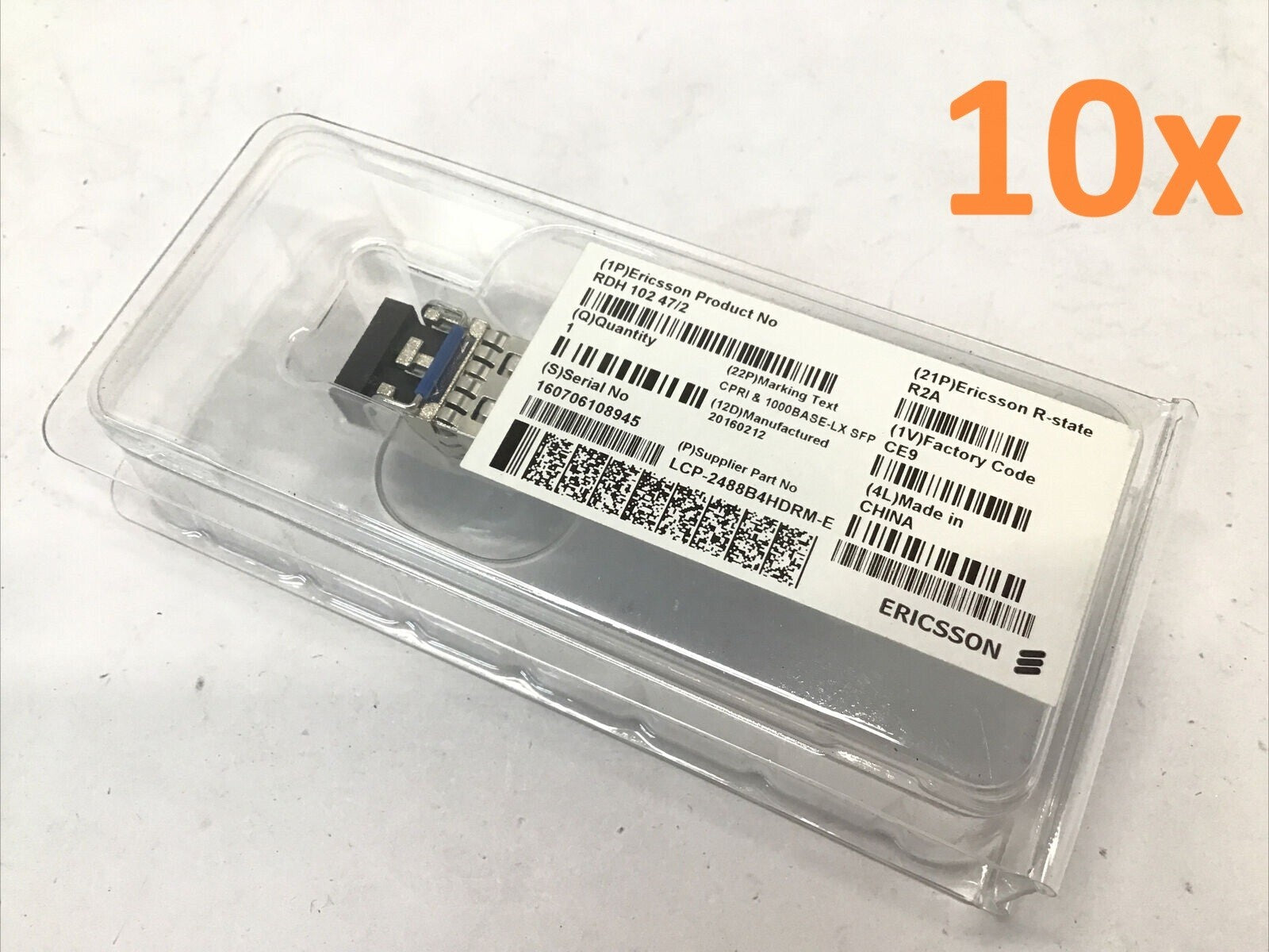 Lot of 10 - Ericsson 1000Base-LX SFP RDH 10Gb SFP+ Transceiver LCP-2488B4HDRM-E