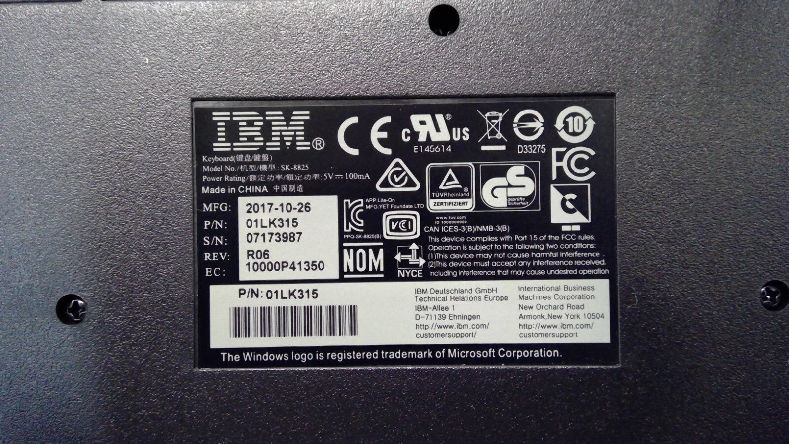 *LOT OF 10*IBM SK-8825 Wired USB Preferred Pro Fullwidth Black Keyboard 01LK315