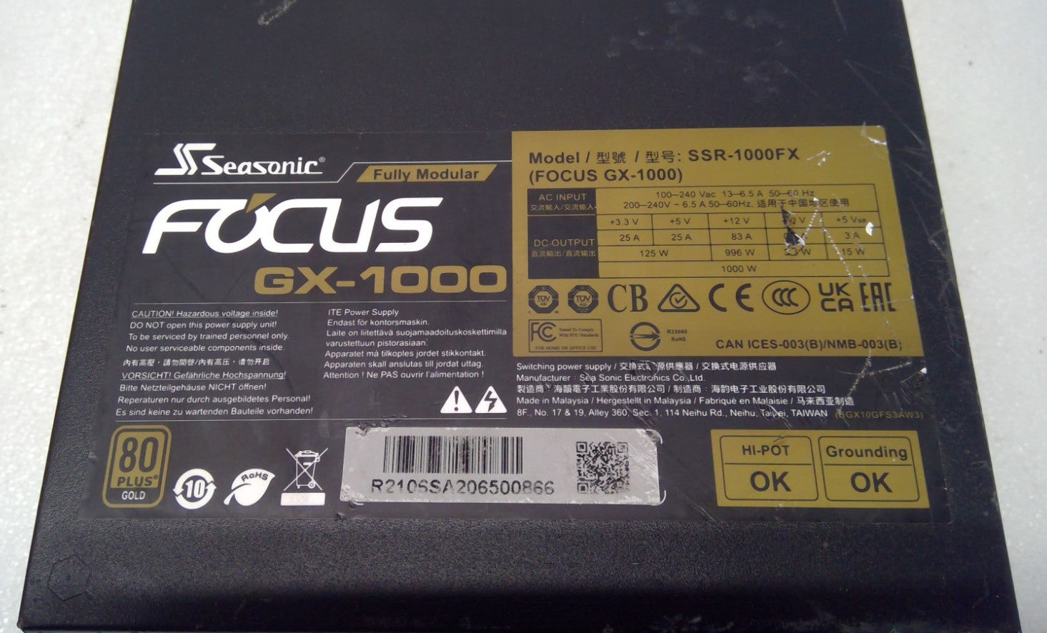 Seasonic FOCUS Plus 1000W ATX 80+Gold SSR-1000FX Full-Modular Power Supply*Read*