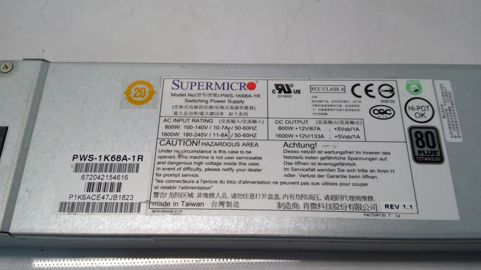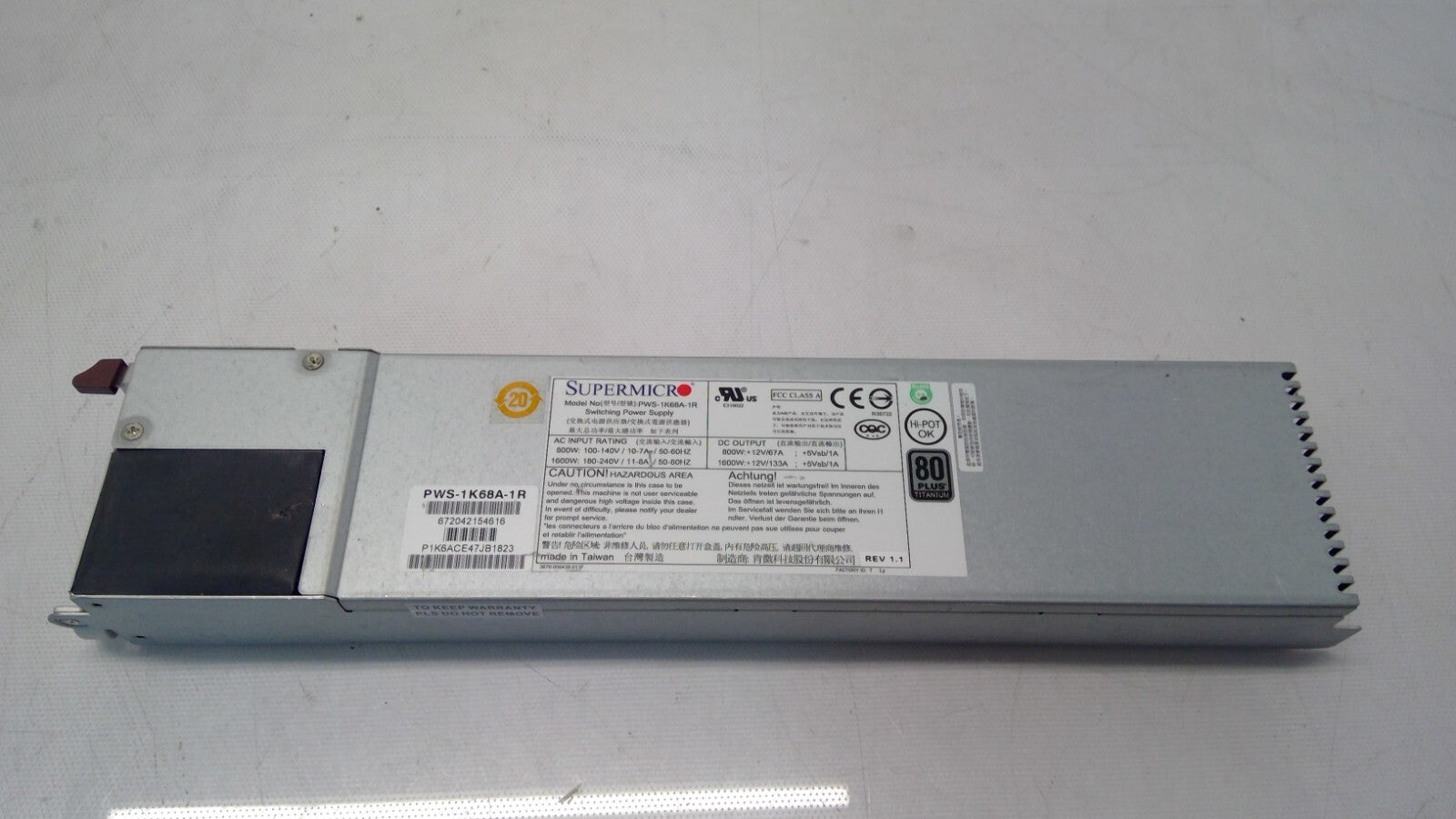 Supermicro PWS-1K68A-1R 1U 1600W Redundant PSU 80 Plus Titanium Power Supply