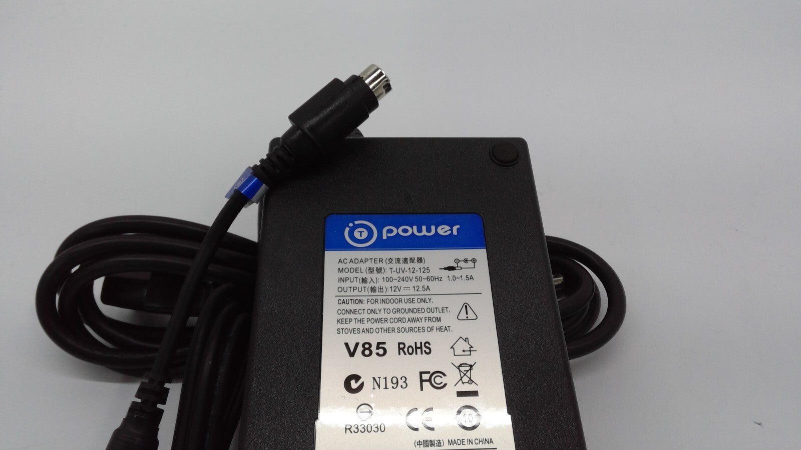 T Power AC Adapter Model T-UV-12-125 12V 12.5A 4PIN