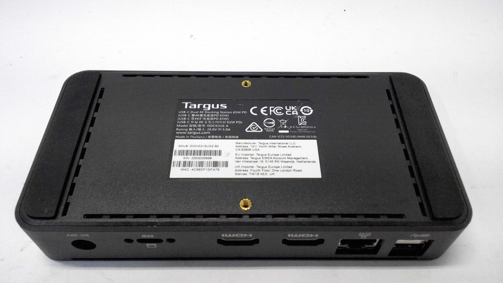 Targus Universal Dock310-A USB-C Dual 4K (DV4K) Docking Station Dock Only
